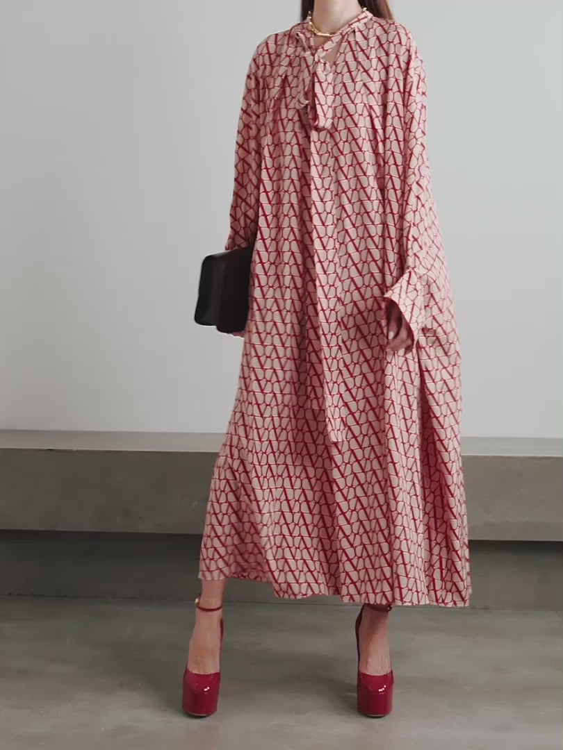 Embrace Passionate Elegance With Our Scarlet Dreams Kaftan, Where Bold Geometry Meets Feminine Grace.